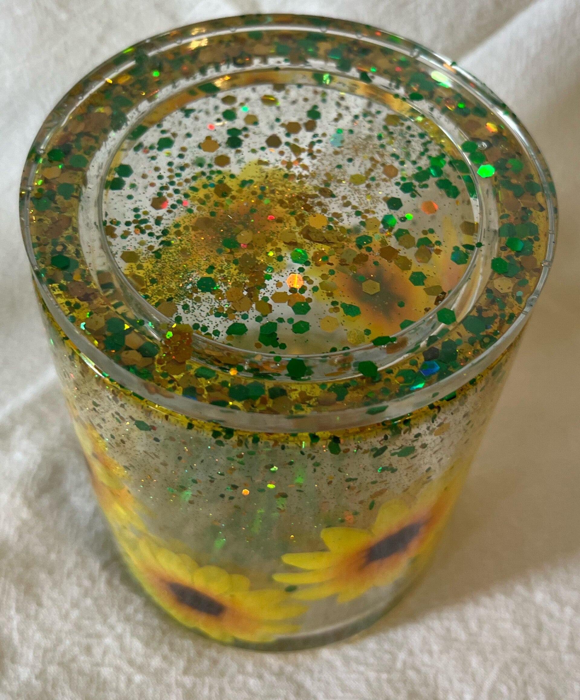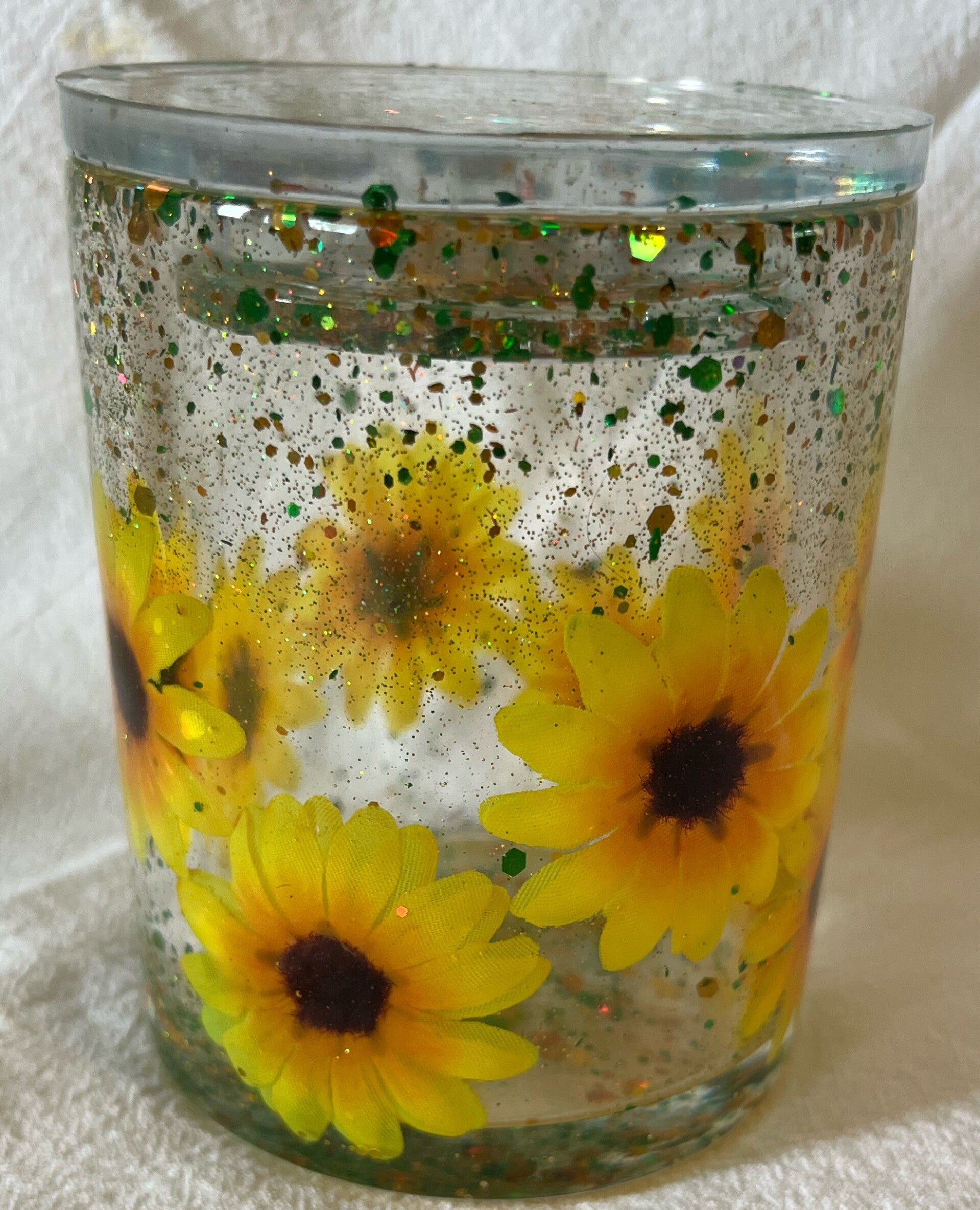 3 ½”high by 3” wide sunflower w/ sealed lid - $18.00
