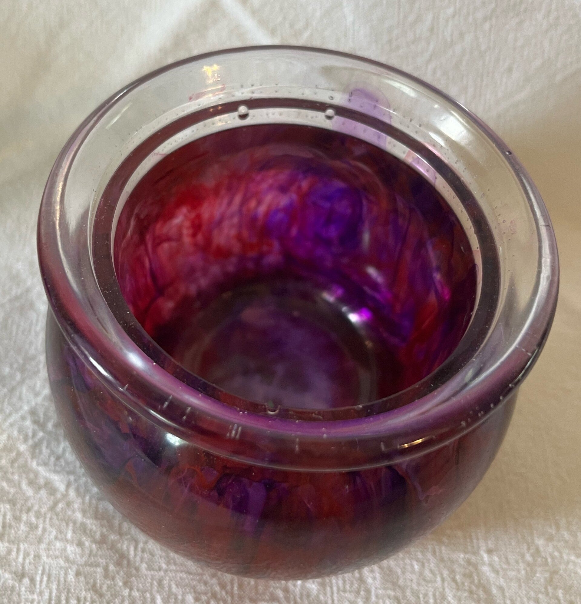 2 ½”high by 3 ¼” wide red/purple votive holder